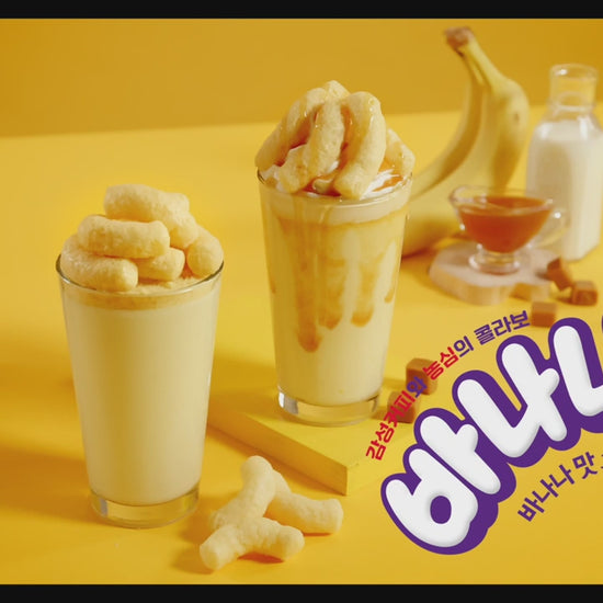 Es un snack coreano icónico con sabor a plátano, producido por Nongshim. Se trata de bocaditos de maíz inflado que destacan por su textura ligera y crujiente, además de su característico dulzor.
