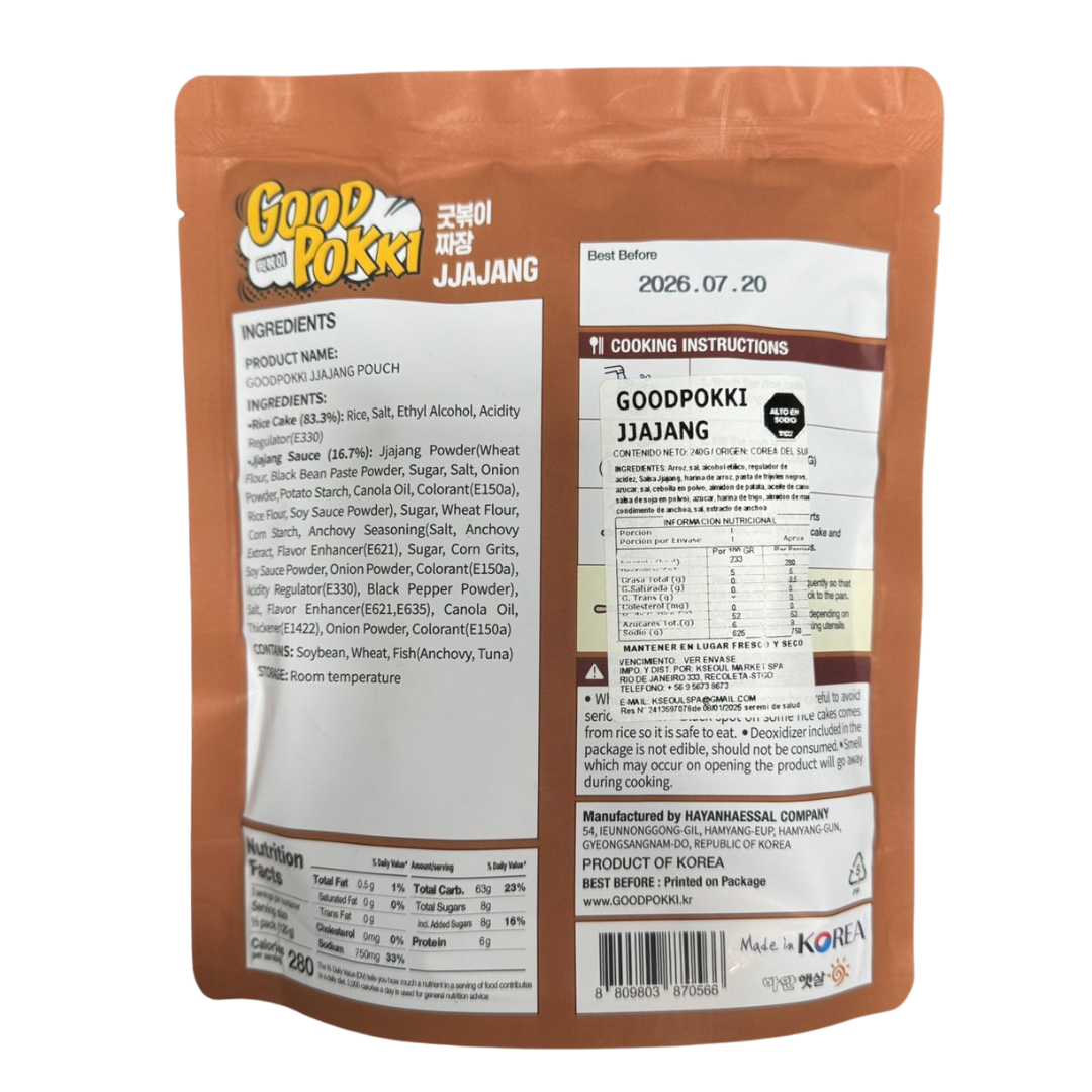 Salsa negra de frijol fermentado, conocida como jjajang. Su sabor es profundo, salado y ligeramente dulce, ideal para quienes buscan una alternativa sin picante.